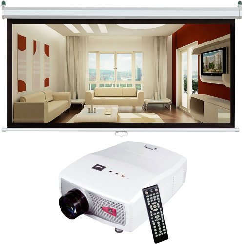 Pyle Video Projector and Screen Package - PRJHD198 60''- 100'' 1080p HD 4:3/16:9 Video Projector w/ usb/sd Media Player - PRJS1680 80'' (39''Hx69''W) Manual C Widescreen Format(16:9) Screen - For Home, School, Office, Business, Meetings and Presentations etc.