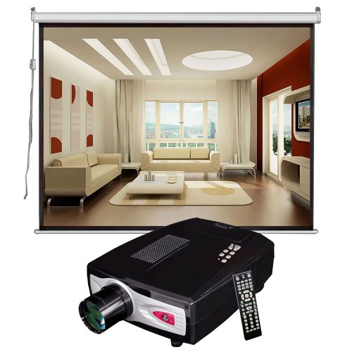Pyle Video Projector and Screen Package - PRJHD66 60''- 100'' 1080i/720p HD 4:3/16:9 Video Projector - PRJSE168 80'' (39''Hx69''W) Motorized Projector Widescreen Format(16:9) Screen - For Home, School, Office, Business, Meetings and Presentations etc.