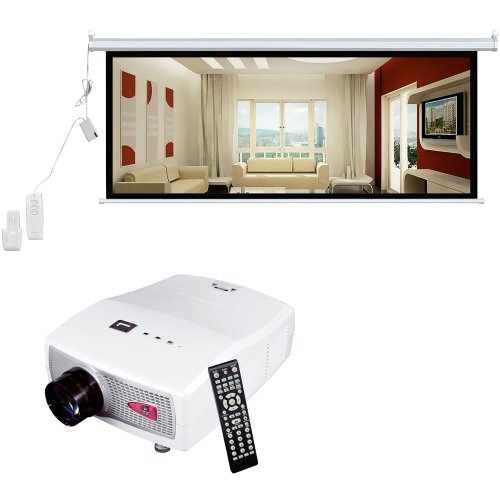 Pyle Video Projector and Screen Package - PRJHD198 60''- 100'' 1080p HD 4:3/16:9 Video Projector w/ usb/sd Media Player - PRJSER1696 96'' (47''Hx84''W) Manual Projector Widescreen Format (16:9) Screen - For Home, School, Office, Business, Meetings and Presentations etc.